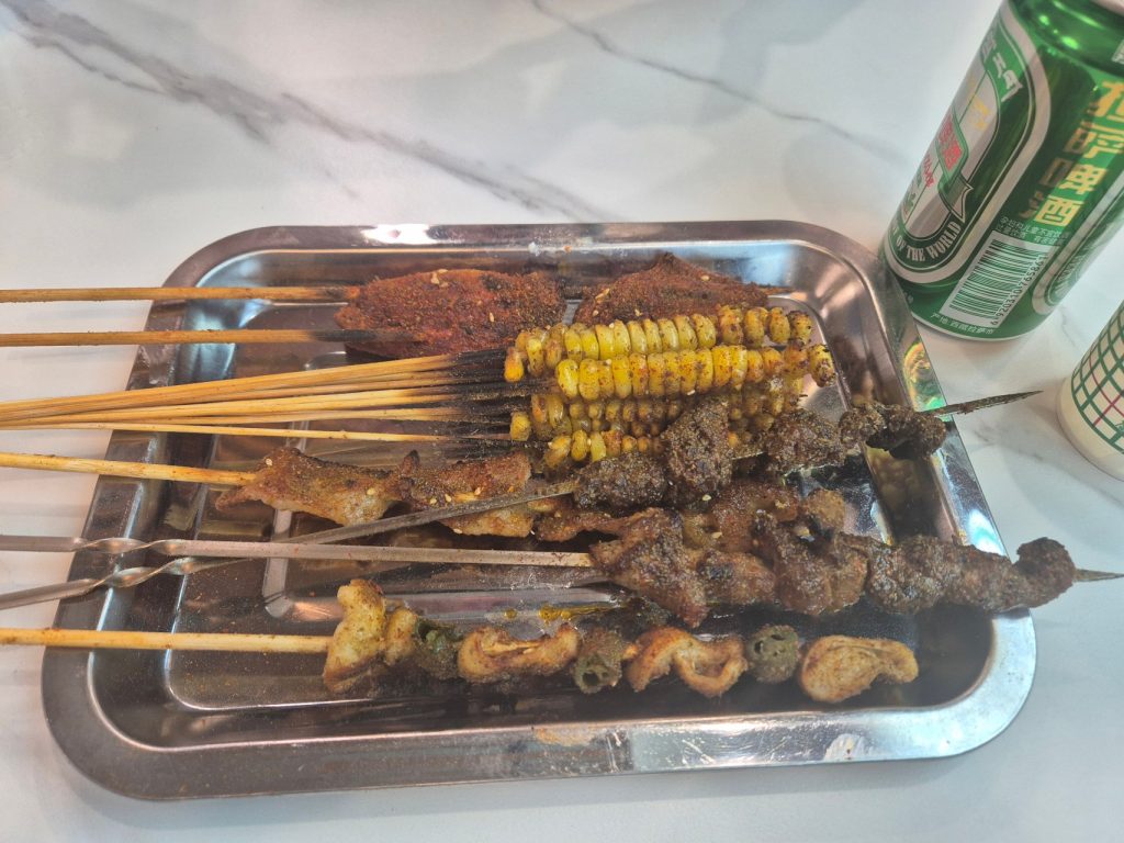 We ordered grilled skewers, which were absolutely delicious and hit the spot after a long day. Many of the restaurants here operate 24 hours, and several are halal or Muslim-friendly, meaning no pork is served. It’s something to take note of and respect when ordering food in this region.