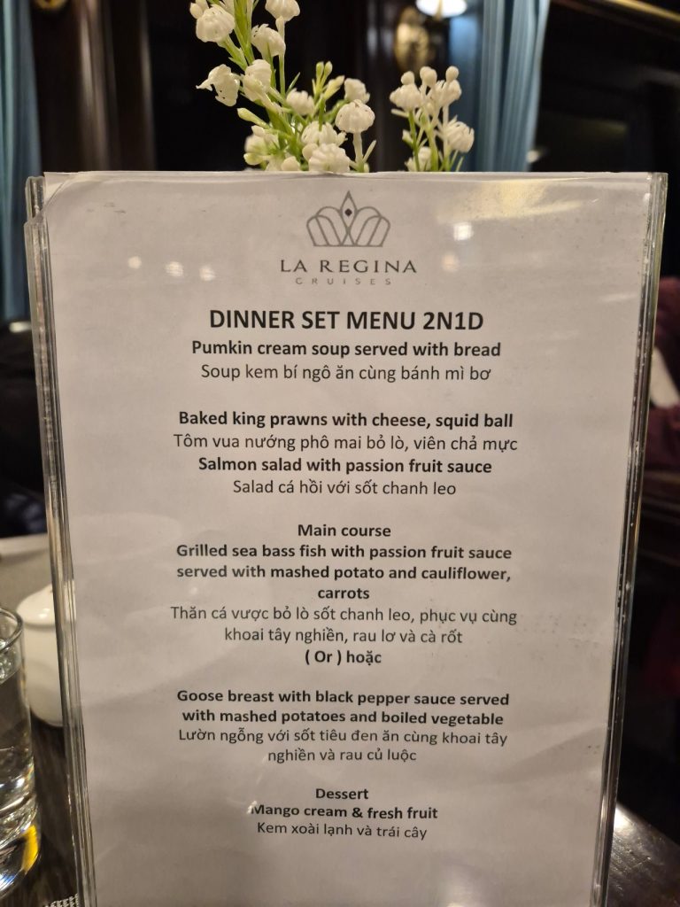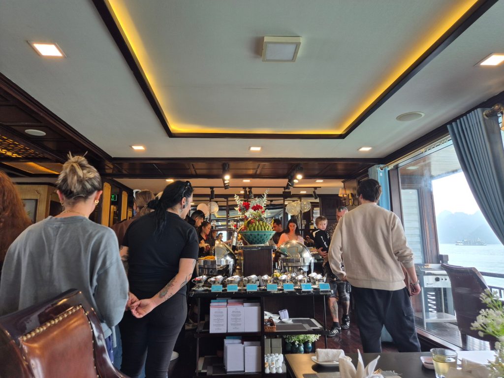 As soon as we boarded La Regina Legend, we were ushered to the restaurant for a sumptuous Vietnamese international buffet. While we ate, the cruise manager gave us a briefing on the itinerary and activities.