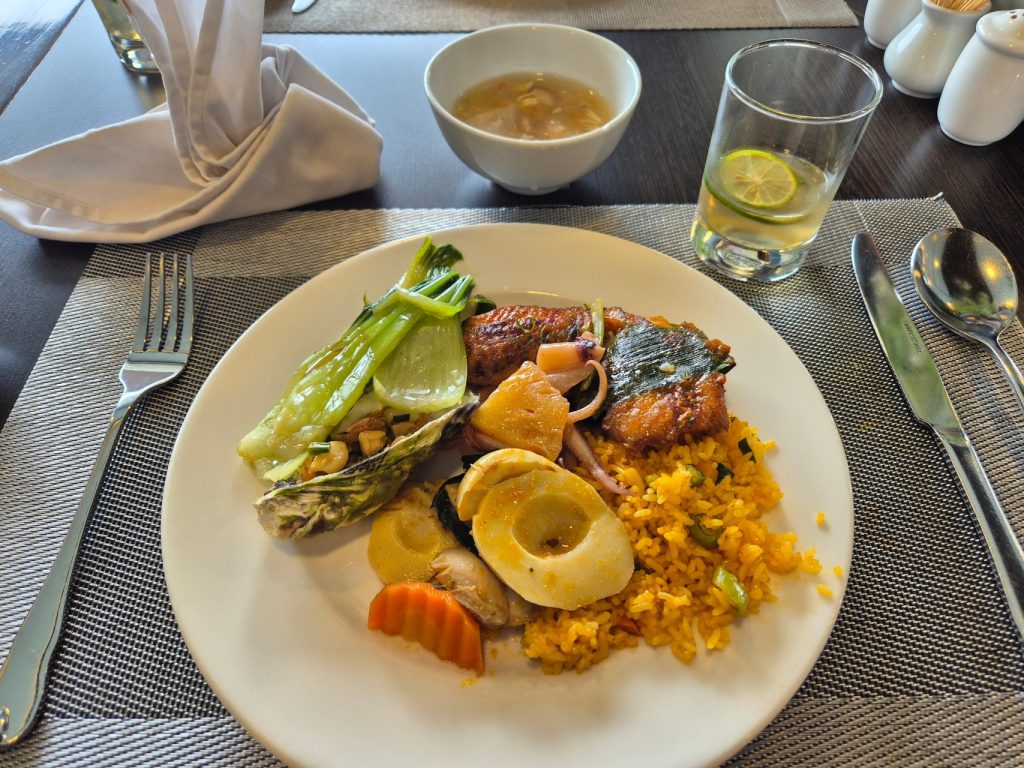 We left our luggage outside our room for the porters, checked out at reception around 9:00AM, and headed to the restaurant for a light breakfast/brunch before the tender boat took us back to the mainland.