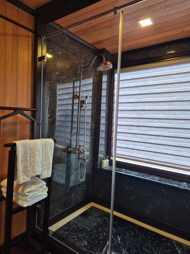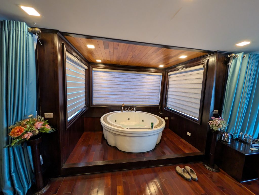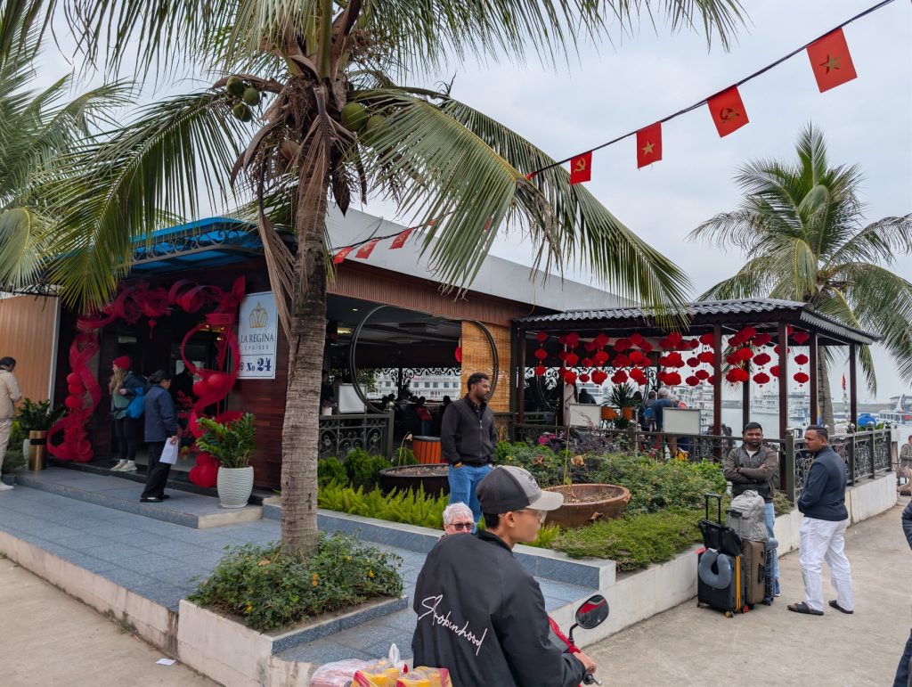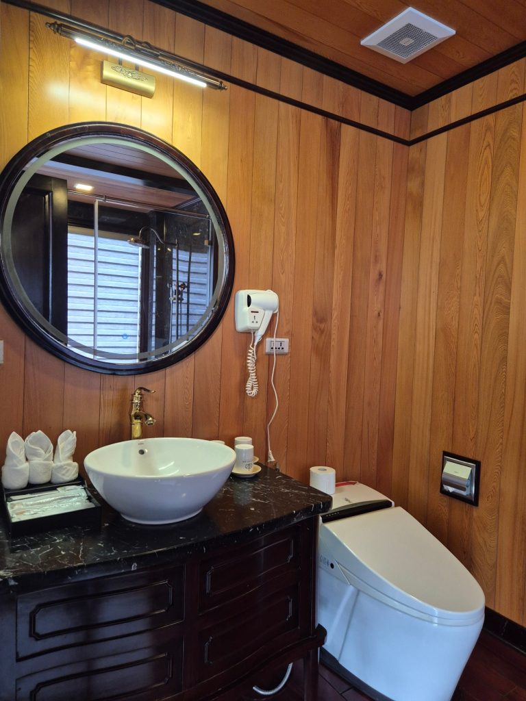 - Cruise Style & Room Type: There are many types of cruise ships and room types to choose from. Do you want the “Old World” charm of a traditional wooden junk boat (like our La Regina Legend) or the sleek look of a modern luxury yacht? Do you want a room with balcony vs without balcony, although I highly recommend booking a room with a balcony so you can watch the limestone karsts from the comfort of your room. Accessibility Tip: If you have mobility issues or are traveling with elderly family members, check if the ship docks directly at the marina. Some ships (like ours) anchor further out which requires a tender boat transfer.