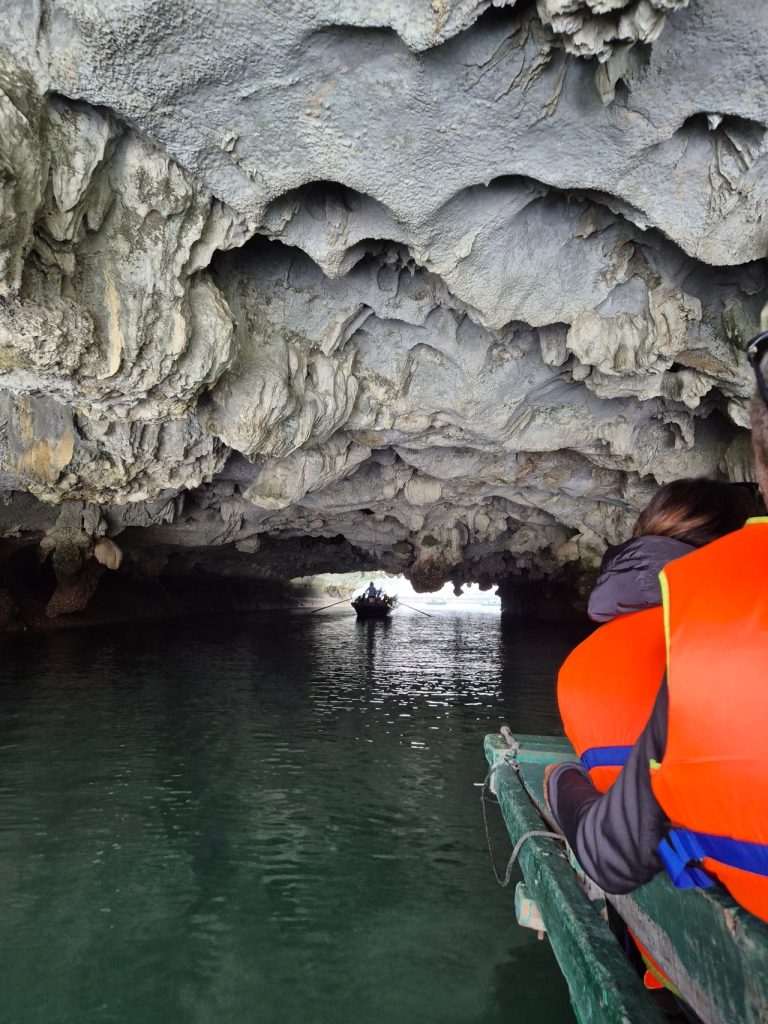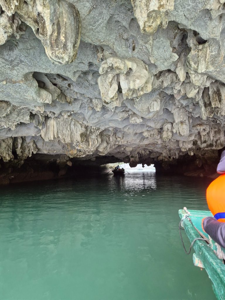 After much rowing, thanks to the uncle, we finally reached the entrance of the cave and going under the low cave ceiling and emerging into a hidden, quiet lagoon was serene and thrilling.