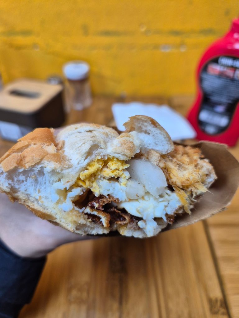 Rick ordered the ham and cold cuts, and I ordered egg and pork floss. The bread was toasted, warm, and crispy to the bite (not cold and hard like others we have tried). The ingredients, especially the radish, were fresh and added flavour to the bread.
