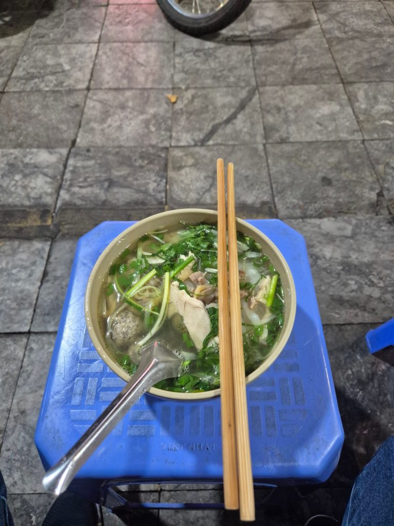I am unable to find the shop on Google, but I marked the location based on the banner. We ordered the good old simple chicken noodle soup — pho ga. One bowl is only 40k VND, less than $2 SGD. Gosh, so cheap.