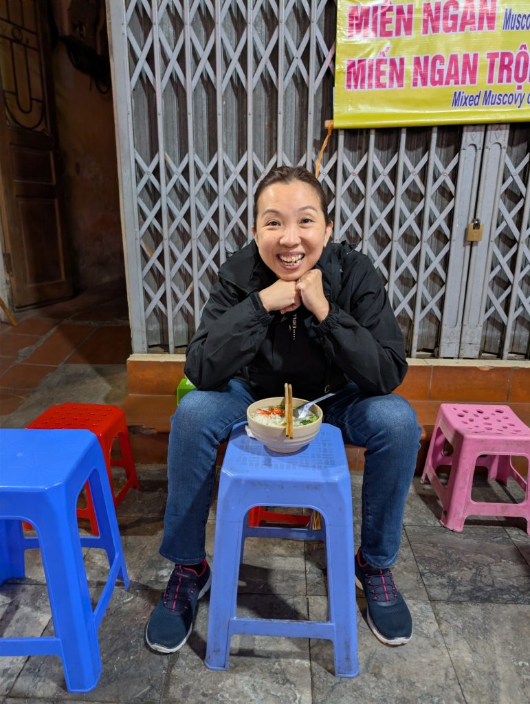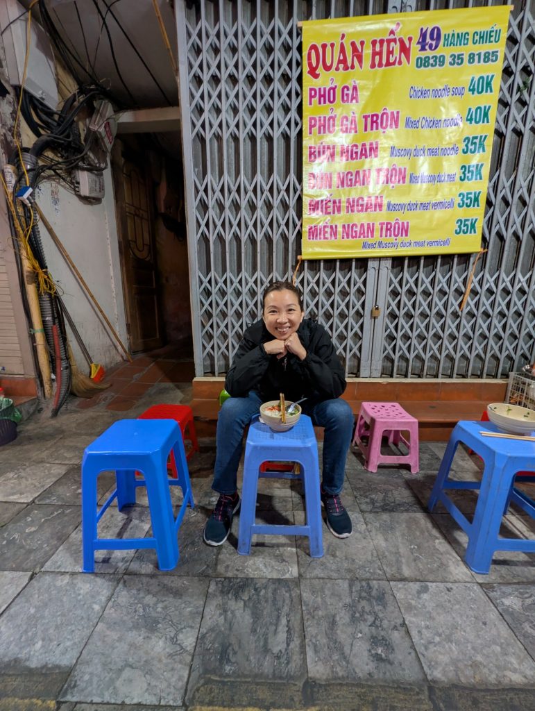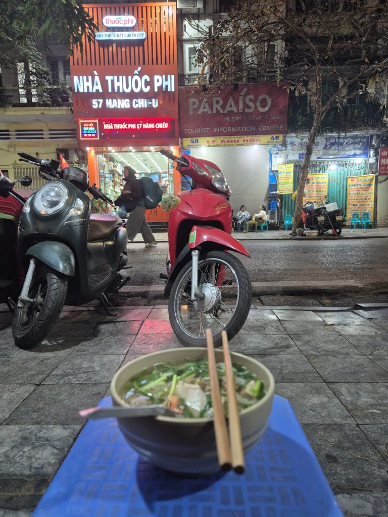 When we turned right, we saw a whole row of roadside stalls selling pho. Oh… decision fatigue again. We settled for the one closest to us.