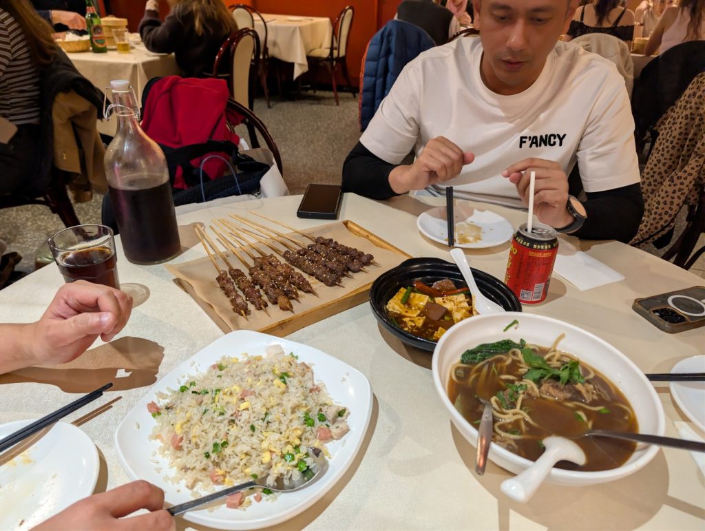 After the game, we headed to a Chinese restaurant for dinner and had BBQ sticks and fried rice. 😂
