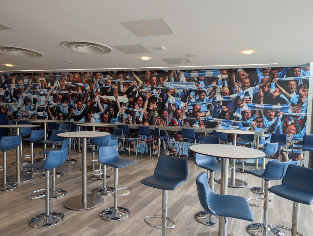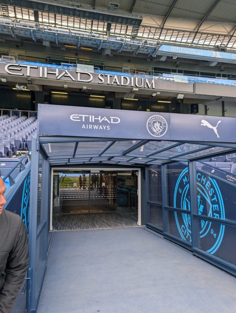 Now the guides came and lead us around the stadium, first we have to walk through the stands where we first catch a glimpse of Etihad Stadium.